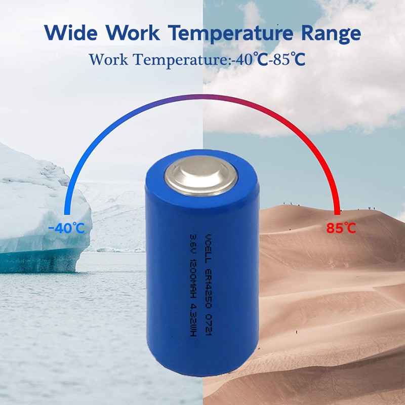 VCELL POWER 7.2V 2200mAh ER14505-2S লিথিয়াম প্রাইমারি ব্যাটারি প্যাকটি সিরিজে সংযুক্ত দুটি ER14505M পাওয়ার Li-SOCL2 সেল নিয়ে গঠিত, একটি 7.2V আউটপুট ভোল্টেজ এবং 2200mAh ক্ষমতা প্রদান করে। এটি বৃহৎ ক্ষমতা সহ একটি উচ্চ-ভোল্টেজ প্ল্যাটফর্মের সুবিধাগুলিকে পুরোপুরি একত্রিত করে। এটির অত্যন্ত কম স্ব-স্রাবের হার, বার্ষিক স্ব-স্রাবের হার 1%-এর কম, ব্যাটারি প্যাকটিকে ঘরের তাপমাত্রায় 10 বছরের বেশি স্টোরেজ লাইফ বজায় রাখতে সক্ষম করে, এটি এমন ডিভাইসগুলির জন্য আদর্শ করে যার দীর্ঘমেয়াদী শক্তি প্রয়োজন এবং ঘন ঘন প্রতিস্থাপন করা যায় না। এর নির্ভরযোগ্যতা এবং দীর্ঘ চক্র জীবন এটিকে স্মার্ট মিটারিং, রিমোট মনিটরিং এবং ব্যাকআপ পাওয়ারের মতো অ্যাপ্লিকেশনের জন্য চমৎকার করে তোলে। এর অপারেটিং তাপমাত্রা পরিসীমা -40°C থেকে +85°C চরম পরিবেশে এর অভিযোজন ক্ষমতা প্রদর্শন করে।